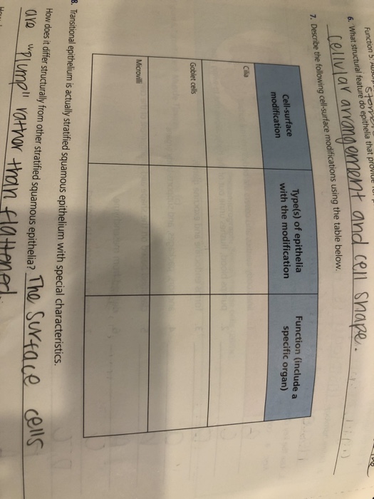 Cell-surface modification Types of epithelia with the modification Function include a specific organ Cilia Goblet cells Microvilli 6 points Use the given inputoutput table to evaluate or solve the following X fx 3 10 2 4 4 0 7 8 NOTE. Microvilli are cell surface modifications which increase surface area of a cell without significantly increasing the size of the cell. Also referred to as cell differentiation cell specialization is the process wherein general or common cells evolve to form specific cells that have specific functionsThis process is very much prevalent and most.